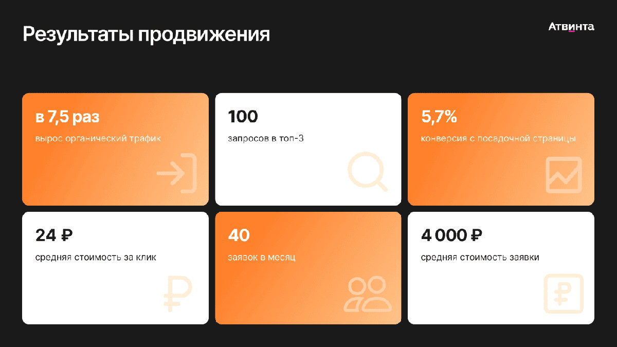 Благодаря комплексному подходу к продвижению мы добились масштабного результата. Вместо точечных действий, дающих краткосрочный эффект, выстроили систему, которая работает на долгосрочную перспективу и закрывает сразу несколько задач бизнеса.