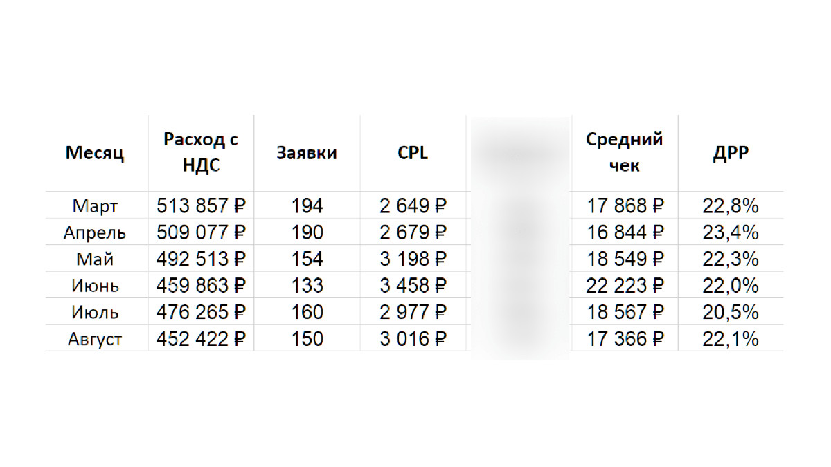 Мы сделали ставку на ремаркетинг, разделив аудиторию на новые, тёплые и горячие сегменты. Но даже здесь ремаркетинг выходит дорогим, так как аудитория обычно быстро принимает решение о покупке, но совершает повторные покупки за короткий срок не часто.