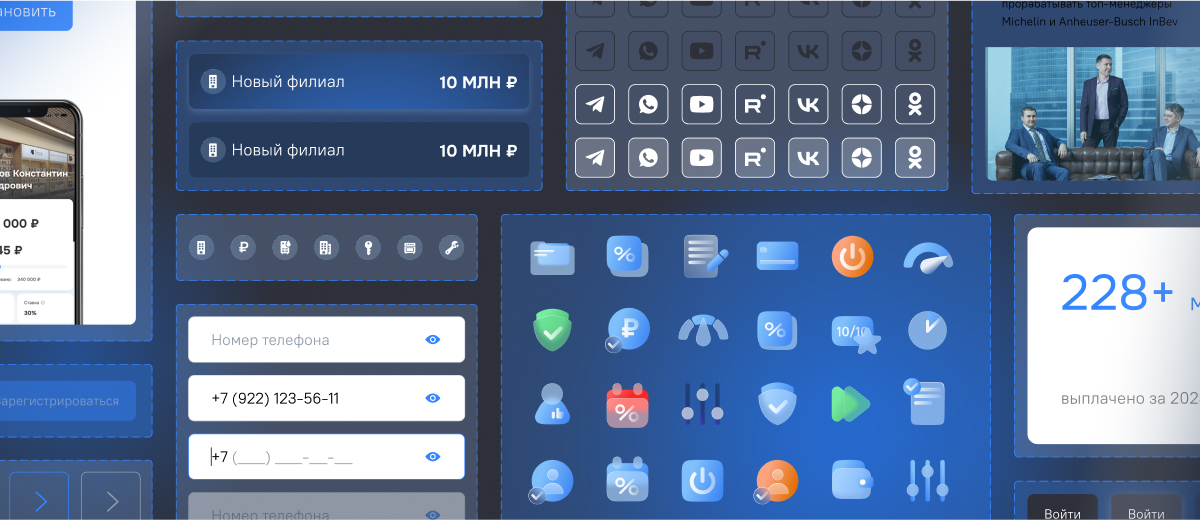 - разрабатывали фирменный стиль сразу в привязке к пользовательским сценариям и интерфейсам;