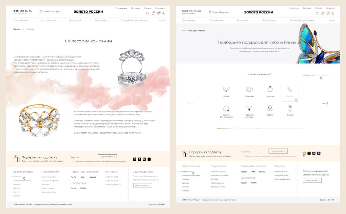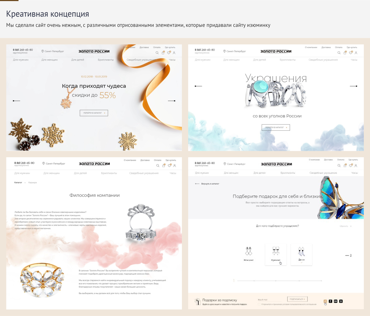 В работе над сайтом «Золото России» сыграло ключевую роль глубокое погружение в специфику ювелирного бизнеса. Мы создали интерактивный прототип высокой детализации, который отразил все нюансы и пожелания клиента. Дизайн получился принципиально другим, ярко выделяющимся на фоне конкурентов.
