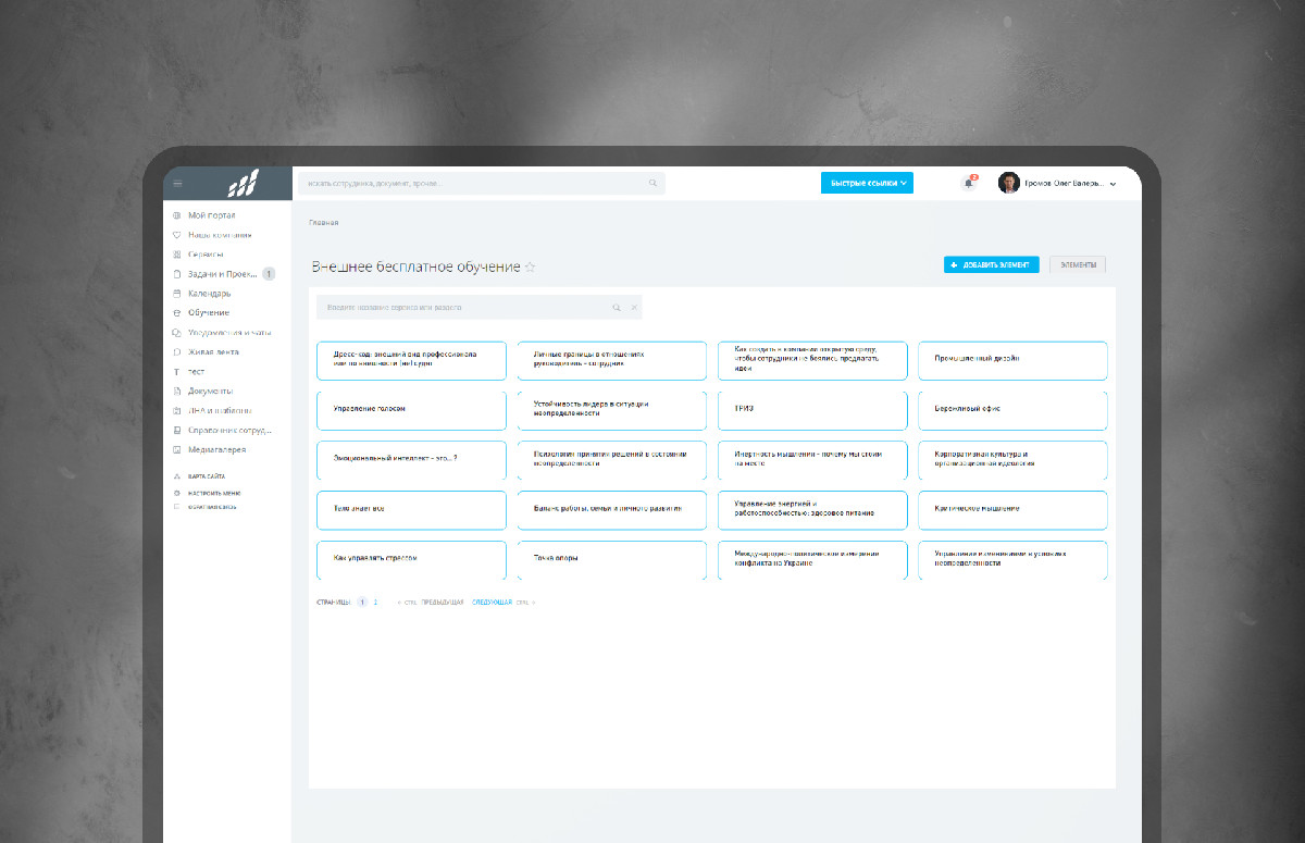 Разработали удобные разделы для обучения, где каждый сотрудник может подобрать для себя подходящие курсы, подать заявку на обучение и посмотреть расписание планируемых курсов в календаре. В интерфейсе портала предусмотрели возможность добавления дополнительных курсов.