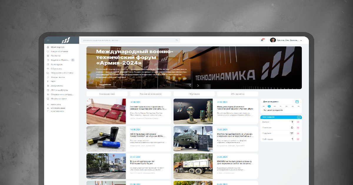 Представители холдинга “Технодинамика” пришли к нам со следующими пожеланиями к тому, какие задачи должен решать их корпоративный портал: