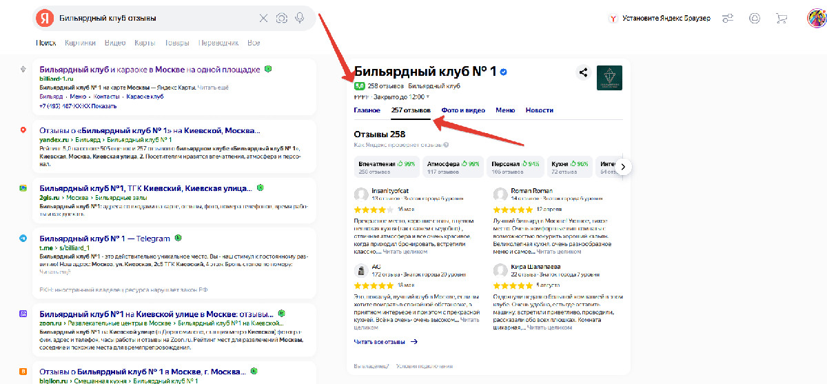 Следим за отзывами в интернете и на ГЕО сервисах. На Yandex картах у нас 5.0, 257 отзывов на момент написания этого кейса.