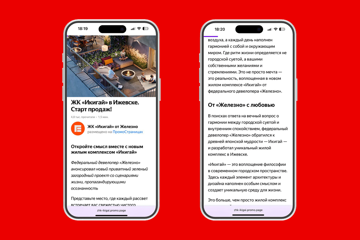 Страница кейса/результат: https://zhk-ikigai.promo.page/media/jk-ikigai-v-ijevske-start-prodaj-67f9124a3266b05280ee753c_0_0