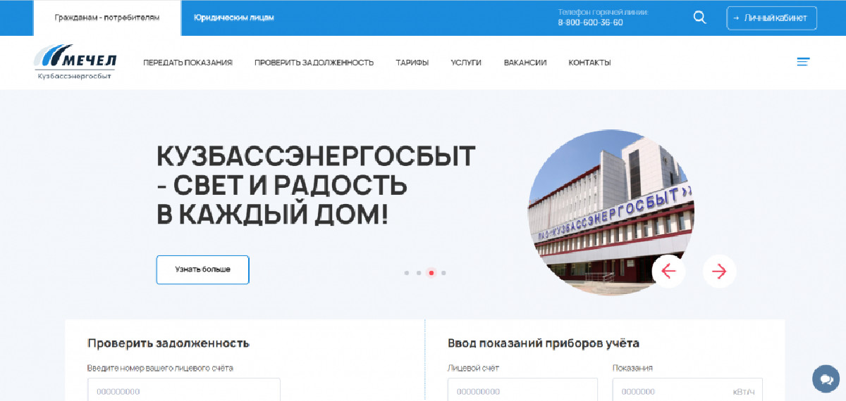 Разработали сайт с проверкой задолженности потребителей и вводом показаний учета