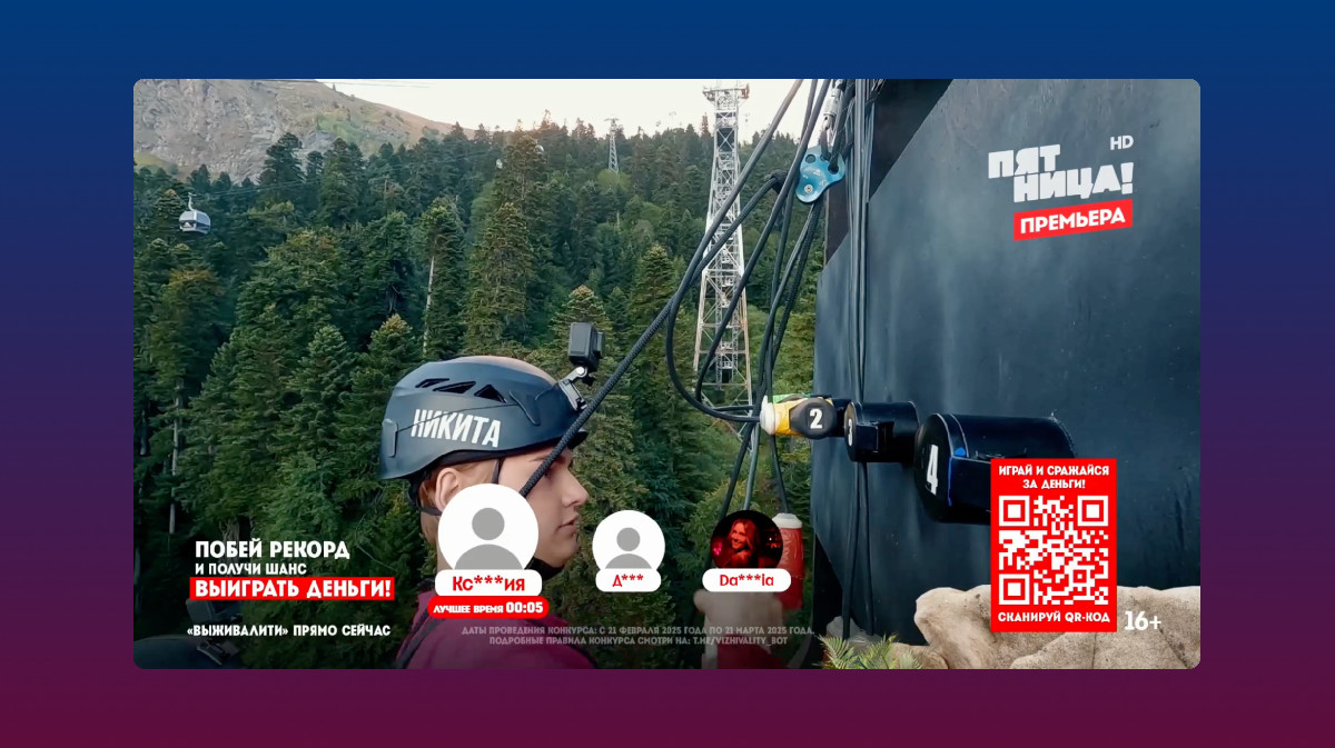 Для зрителя это работало так: увидел QR-код на экране — открыл бот, прошел испытание, оказался в числе лидеров — увидел себя на ТВ. Зрители могли ощущать соревновательный дух между собой во время выпуска.
