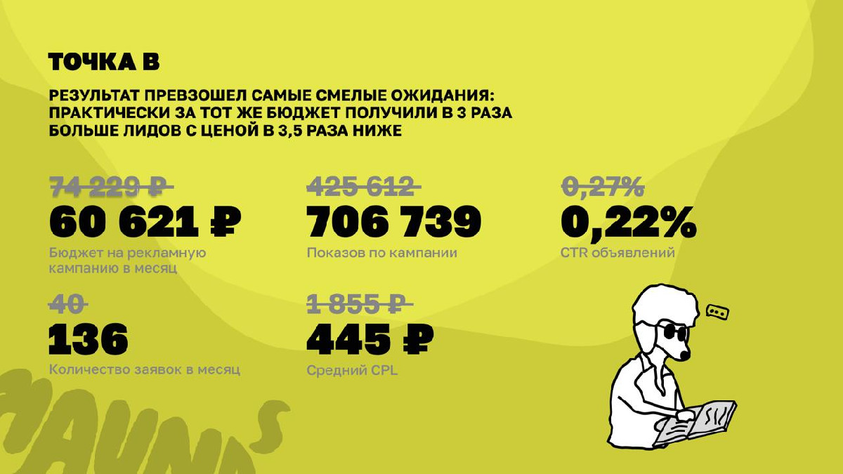 Результат — CPL меньше на 76%