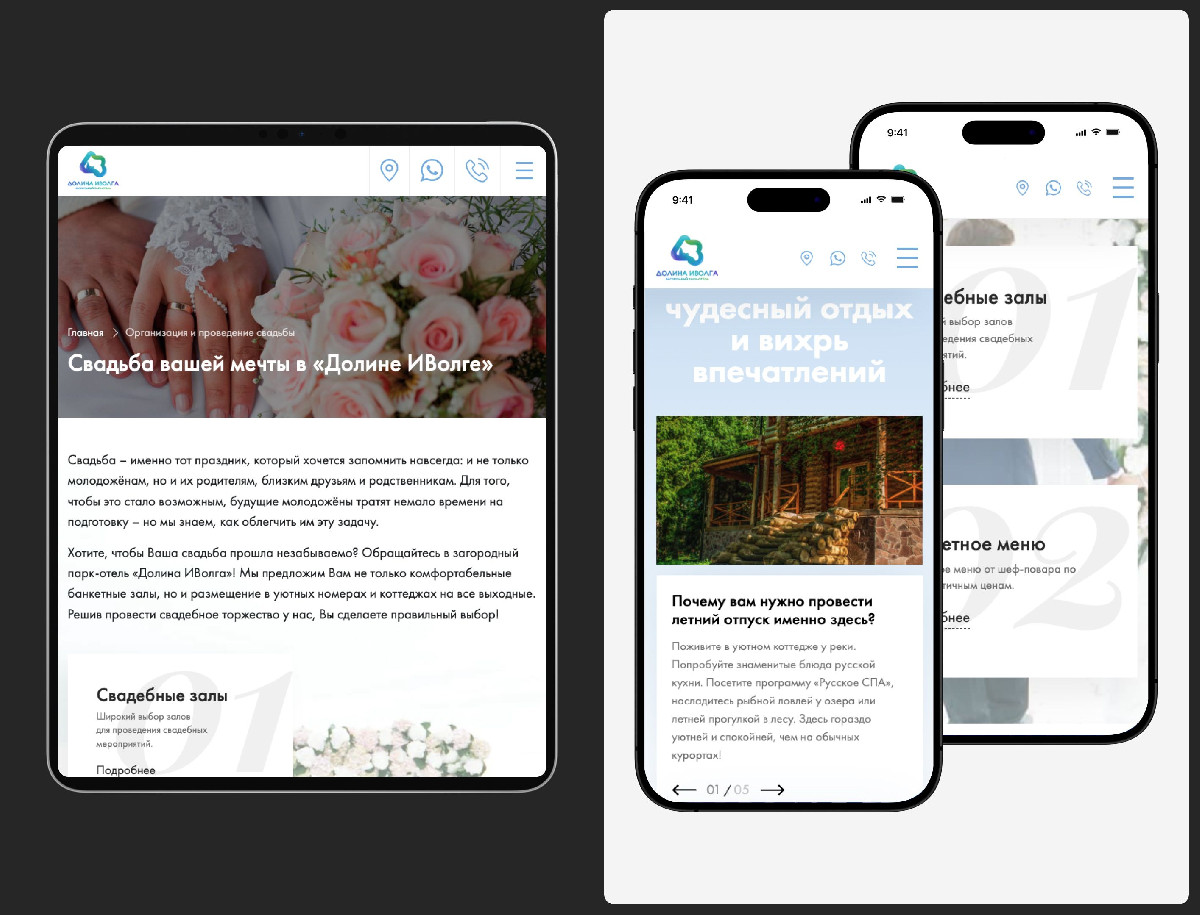 Разработка сайта для парк-отеля «Долина Иволга», который бы презентовал его как уникальное место для отдыха, предоставлял информацию об услугах, размещении, мероприятиях и упрощал процесс бронирования.