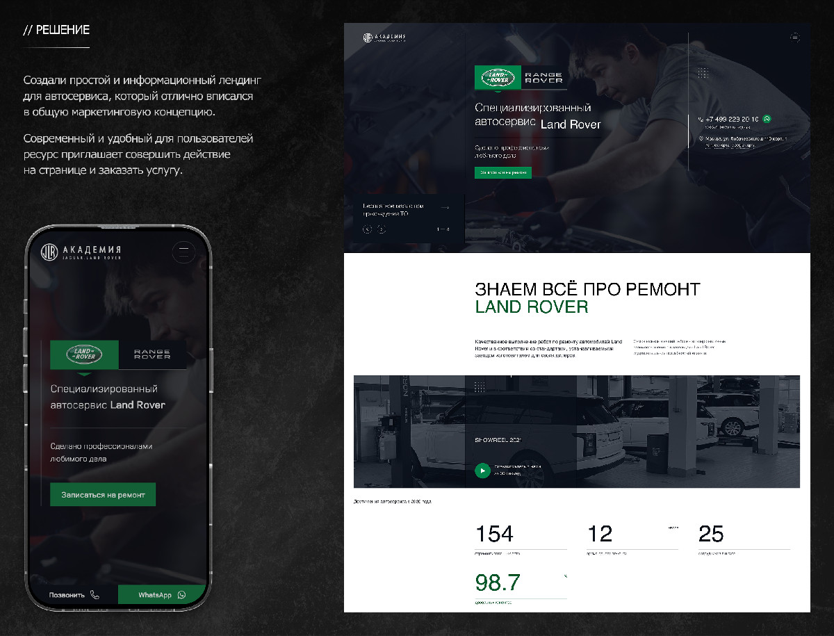 Создан минималистичный и современный дизайн, отражающий премиальность бренда Land Rover и профессионализм сервиса.