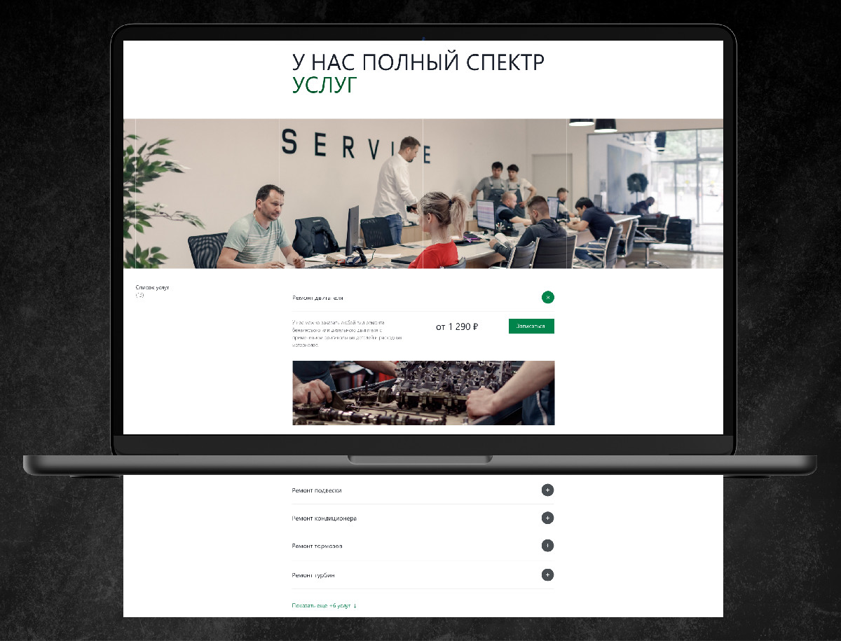 Разработать лендинг-страницу для специализированного сервиса по ремонту автомобилей Land Rover. Основная цель — создать лаконичный и понятный ресурс, который бы предоставлял клиентам всю необходимую информацию без перегрузки лишними деталями, а также способствовал увеличению заявок на услуги.