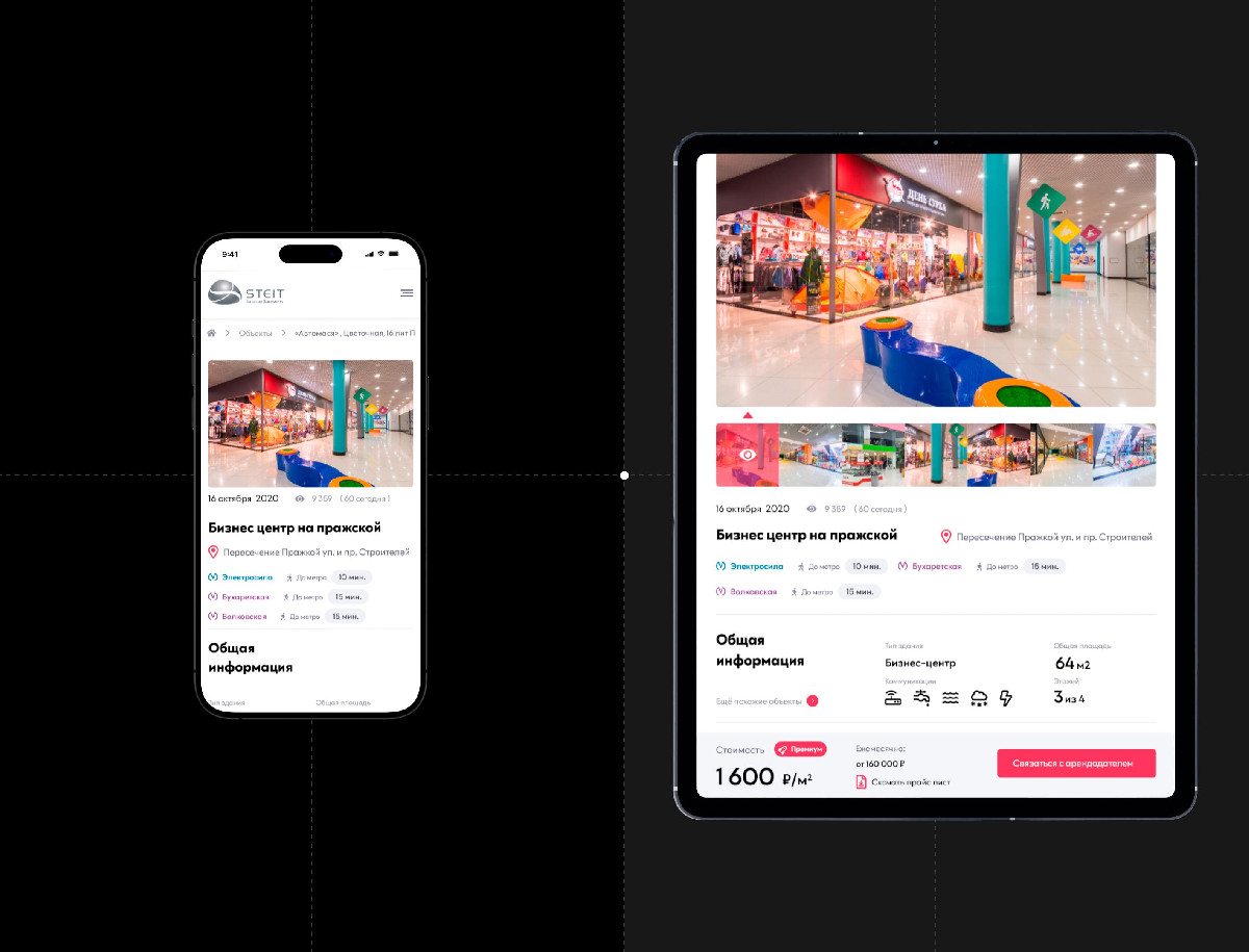 Разработка дизайна для сервиса «Steit» успешно завершена, в результате чего создан современный и эргономичный интерфейс, ориентированный на максимальное удобство пользователя. Минималистичный подход в сочетании с продуманной навигацией и эффективной системой фильтрации обеспечивает простой и быстрый поиск недвижимости. Интерактивные элементы и качественные визуальные компоненты способствуют комфортному взаимодействию с сервисом, улучшая общее впечатление пользователей. Реализованные решения значительно повысили удобство использования, лояльность аудитории и конверсию, укрепив позиции «Steit» как современного и клиентоориентированного сервиса по подбору недвижимости.