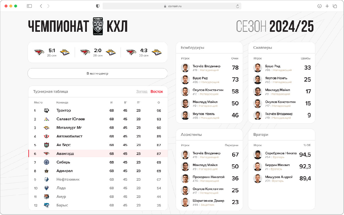 ХК «Авангард» перезагрузился: как мы заложили новый стандарт сайтов для хоккейных клубов