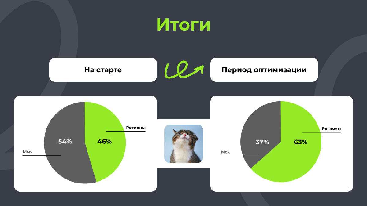 - Снижали стоимость закупки там, где эффективность была ниже, чтобы удерживаться в рамках в KPI;