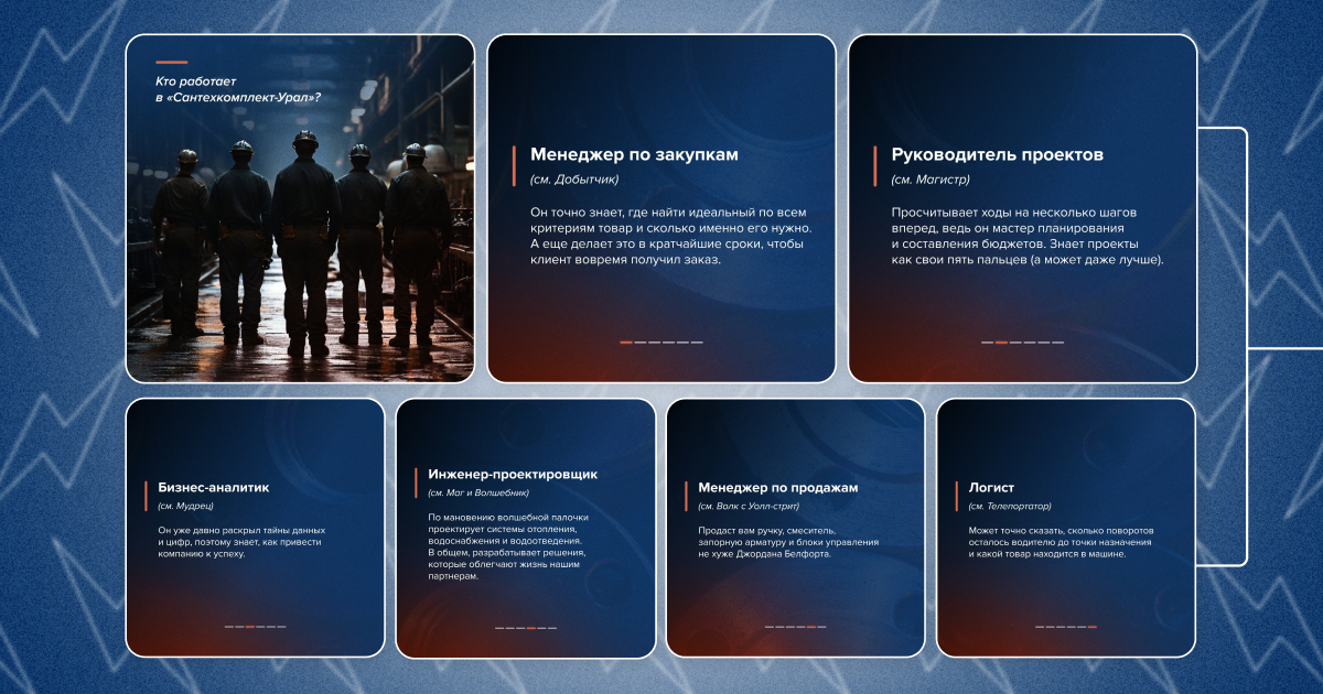 Фоном повышаем интерес к компании среди потенциальных сотрудников и создаем образ сильного HR-бренда. В контенте показываем «Сантехкомплект-Урал» как привлекательного работодателя, делаем акцент на сотрудниках и их развитии в компании, потому что лучшее доказательство — люди.