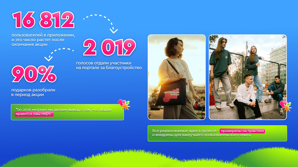 Мы создали продукт, который не просто собрал пользователей, а сформировал эмоциональную связь с городом и показал, что участие в его развитии может быть увлекательным, стильным и по-настоящему современным.