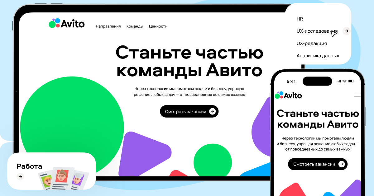 - Собрать все актуальные вакансии Avito на одной площадке.
