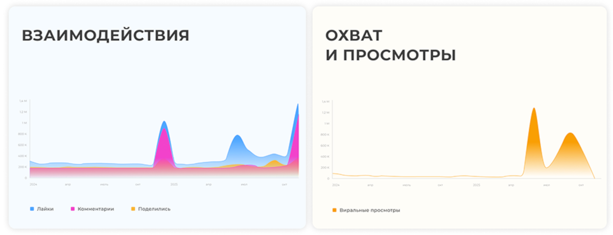 - Пиковый виральный охват одного поста — 1,17 млн.
