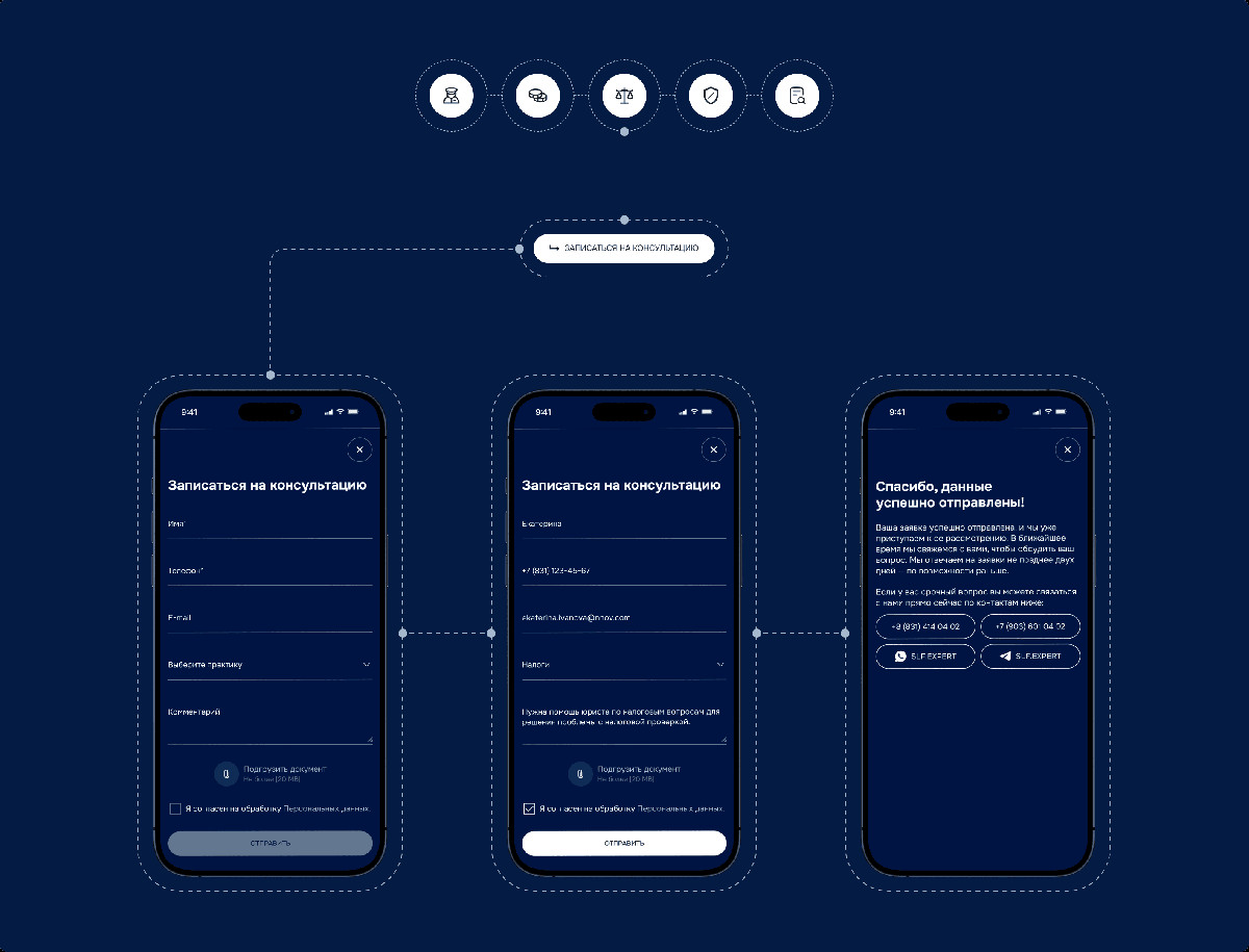 Создан современный и профессиональный дизайн, отражающий expertise и надёжность юридической фирмы.