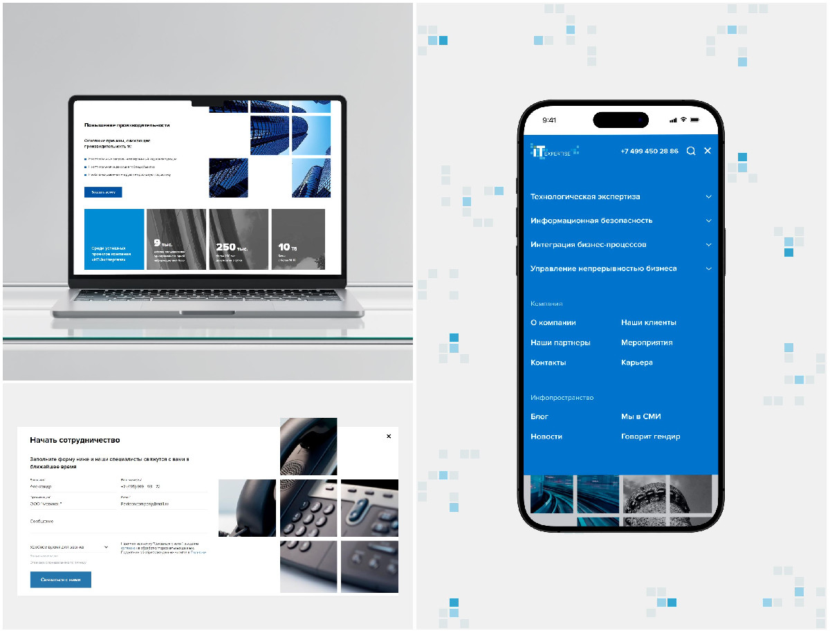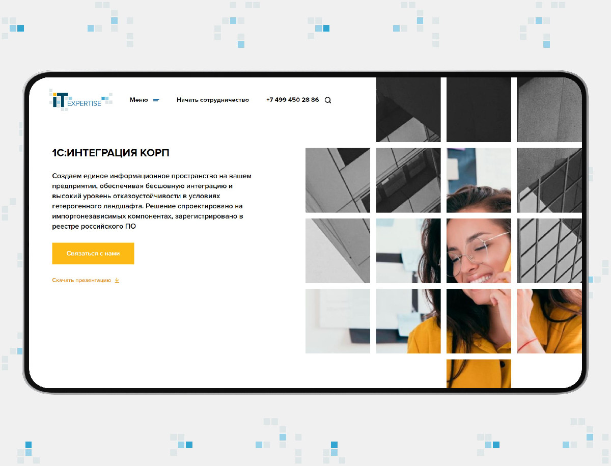 Разработать корпоративный сайт для IT-компании «IT-EXPERTISE», которая специализируется на экспертных IT-решениях для бизнеса, включая сложные задачи ИТ-архитектуры, интеграции и информационной безопасности. Сайт должен был подчеркнуть экспертность компании, представить её услуги, кейсы и технологические преимущества, а также обеспечить удобство взаимодействия для потенциальных клиентов и партнёров.