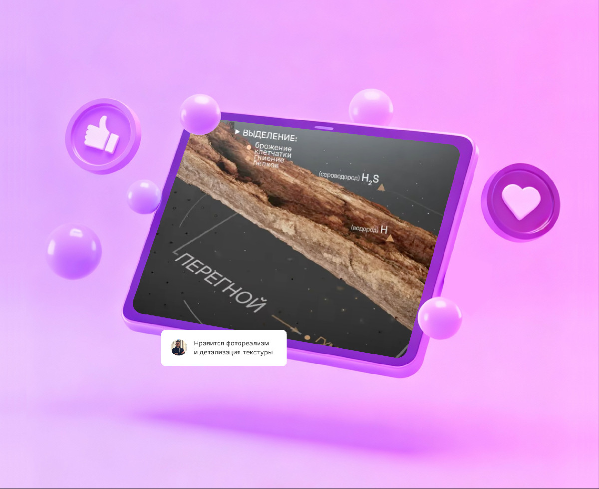 Наш арт-директор подобрал референсы, чтобы определить стилистику 3D-разрезов: как выглядят слои, какая текстура у материалов, как движется камера.