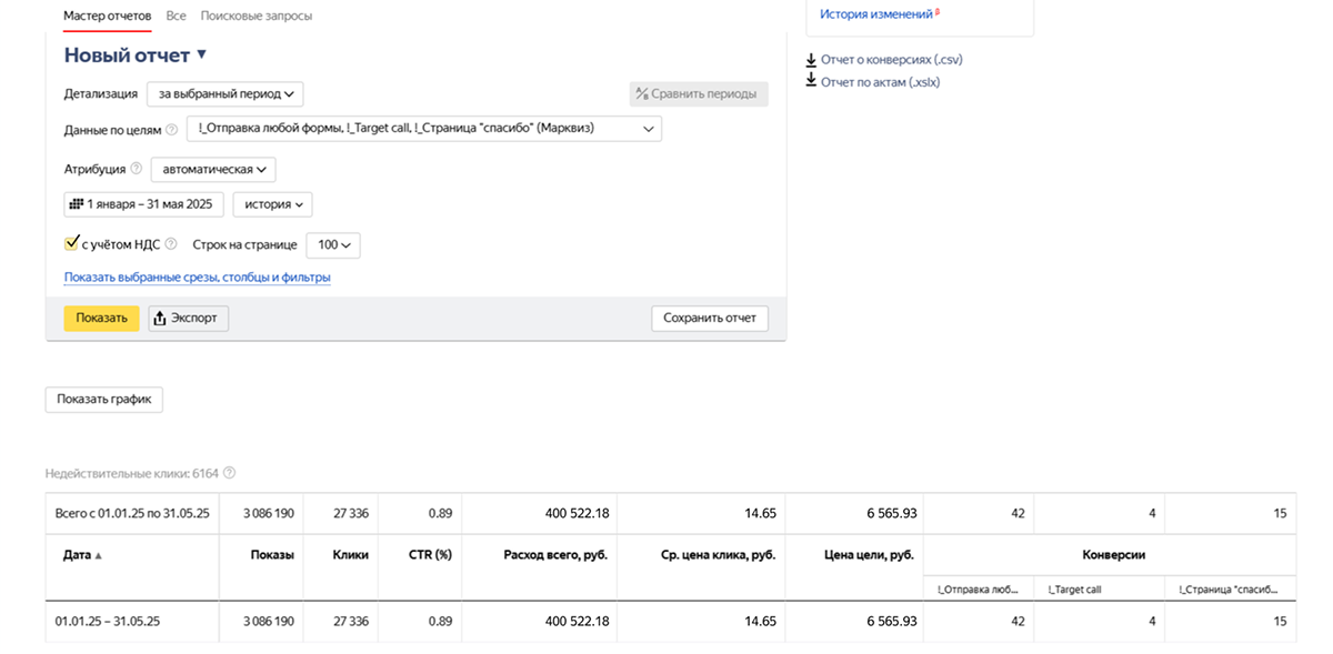Однако, несмотря на значительные вложения в Яндекс.Директ, бизнес столкнулся с критически низкой эффективностью: