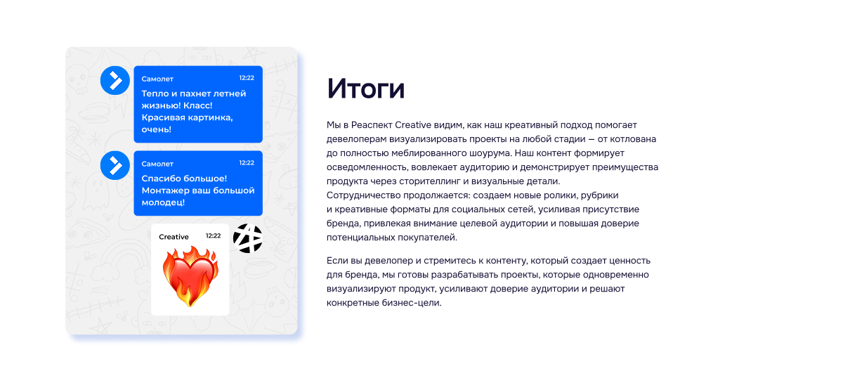 Креатив в девелопменте — это инструмент управления ожиданиями покупателя. Кейс «Самолета» подтверждает: системный подход к контенту позволяет эффективно продавать ценность объекта даже на стадии фундамента. Мы продолжаем развивать присутствие бренда, объединяя аналитику потребительских предпочтений с технологичным видеопроизводством.