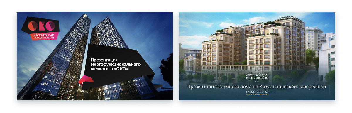 - Москва-Сити: визуализировали все башни. Человек кликал на небоскреб и видел лоты. Продумали все: от переключателя валют до пешеходных переходов на карте.