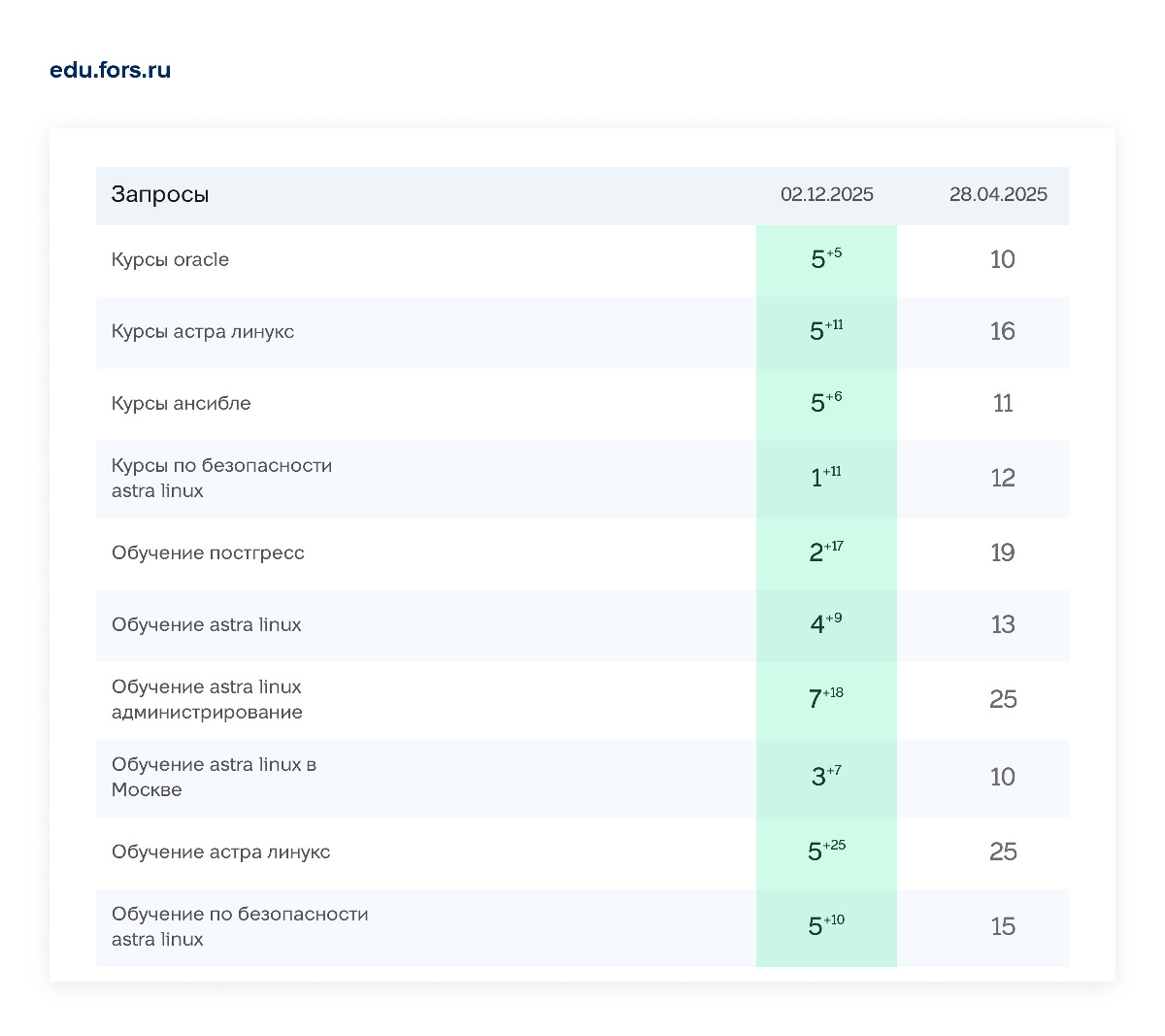 Так вот, у «ФОРС» была скорее удочка. Сайт присутствовал в поиске, но по ограниченному набору формулировок — половина реального спроса проходила мимо. А в ИТ‑обучении спрос очень конкретный: «курс PostgreSQL администрирование», «обучение Oracle для администратора», «Astra Linux обучение безопасность» и т.д. Такие запросы часто как раз самые конверсионные.