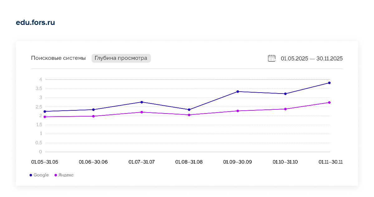 • Вовлеченность выросла: глубина просмотра стала выше в 1,8 раза в Google и в 1,3 раза в Яндекс.