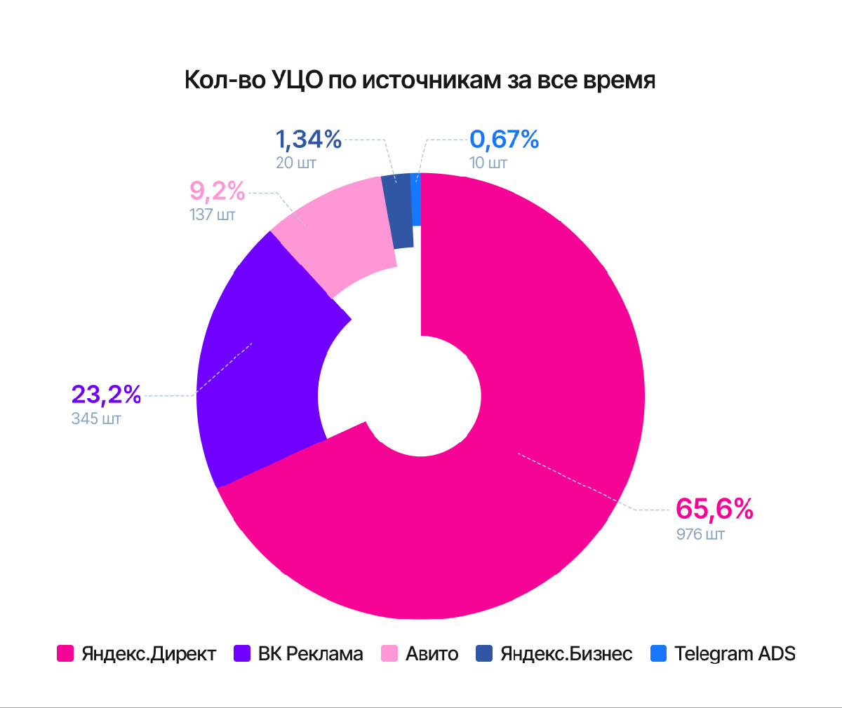 Проблема номер 3 стала очевидной во втором полугодии 2024 года, когда самые проверенные и рабочие связки перестали работать: сильно выросла стоимость клика, а количество лидов не увеличивалось. С этой проблемой мы стараемся работать в комплексе — использовать дополнительные инструменты для продвижения, такие как таргет ВК и Telegram, Авито и. т. д. Это позволяет иметь много точек контакта с целевой аудиторией и снижать стоимость целевых лидов на большом промежутке времени. Также мы часто обновляем креативы, чтобы избегать баннерной слепоты у пользователей и тестируем новые дополнительные инструменты внутри каждой рекламной системы. Всего за 2025 год с Директа удалось собрать 435 УЦО по 3900 ₽, % квалификации около 52%, ДРР порядка 3,2%.