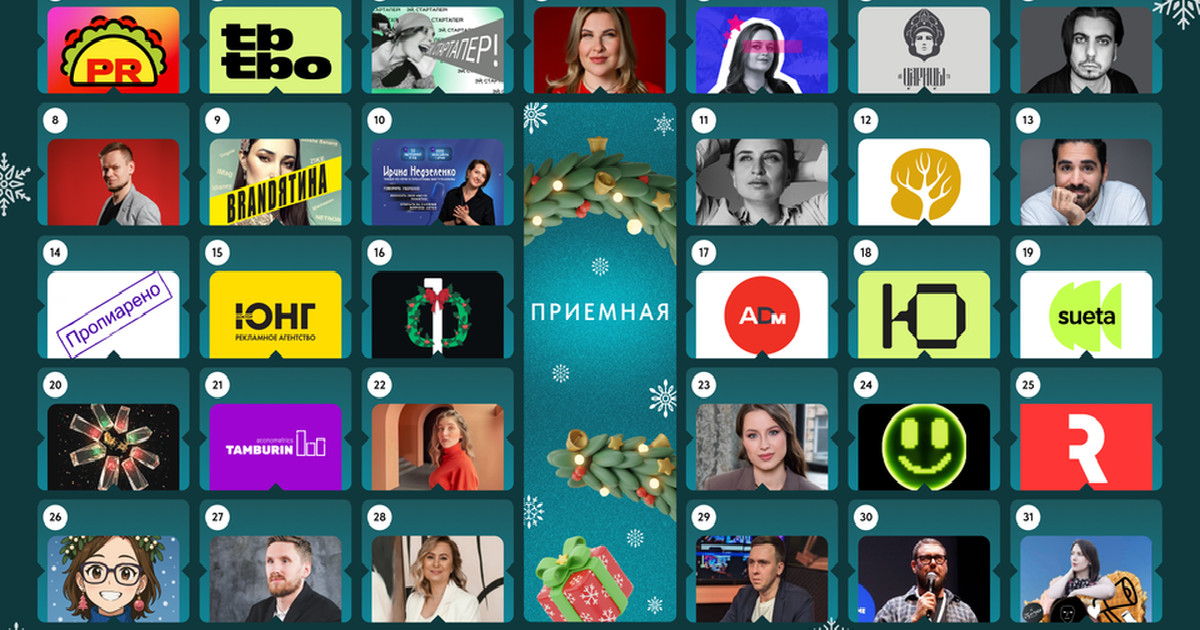 Переходя из одного канала в другой, аудитория погружалась в новогоднюю атмосферу. Участники адвента рассказывали про новогодний брендинг, репутационную гигиену, праздничные рассылки для блогеров, особенности B2B-маркетинга в 2026 году, тренды, желания, архетипы, развлечения и другие интересные темы.