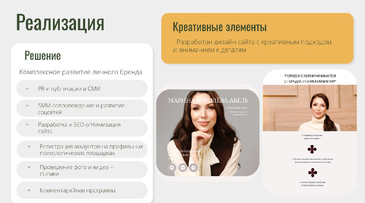 Системная работа над личным брендом Марины была выстроена в несколько ключевых этапов.