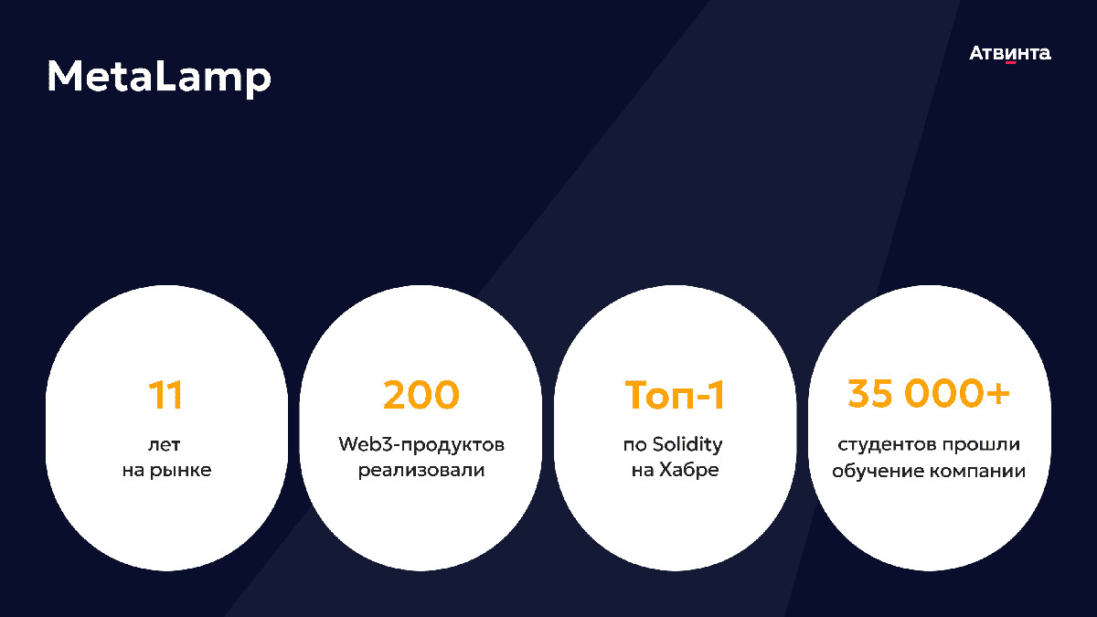 Компания входит в международные рейтинги, а их блог на Хабре занимает топ-1 по Solidity и топ-2 по децентрализованным сетям. С 2016 года заказчик развивает онлайн-обучение по Web3, которое прошли более 35 000 студентов.