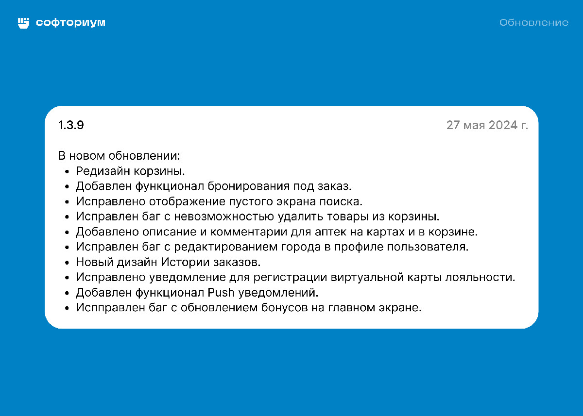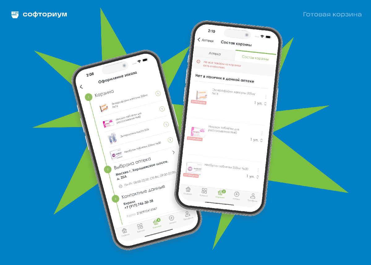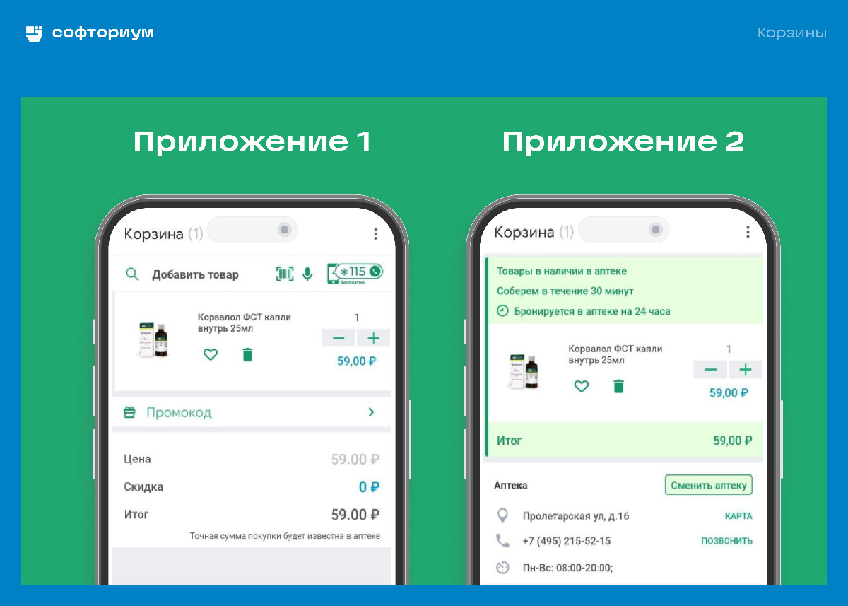 У заказчика было еще одно приложение для другой сети аптек. О работе с ним мы писали в кейсе «Исправили баги и увеличили аудиторию приложения с 50 тыс. до 110 тыс. Кейс федеральной аптечной сети». Вместе с заказчиком и его разработчиками решили, что можно взять наработки по корзине из второго приложения, во многом аналогичного по функционалу.