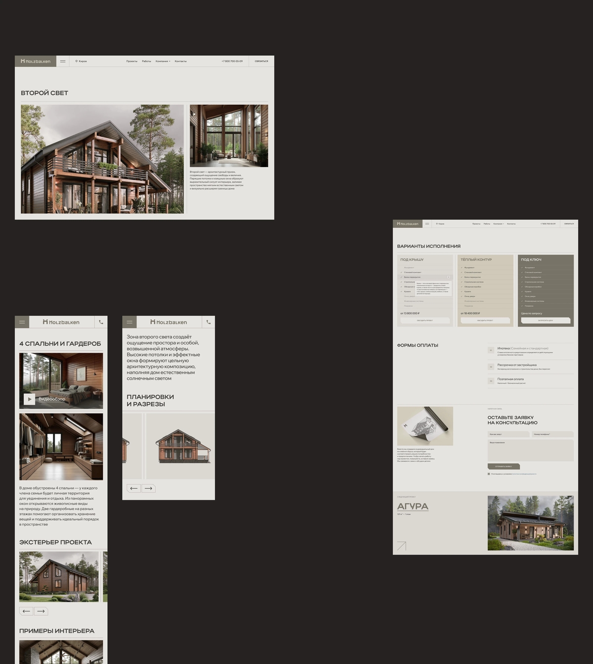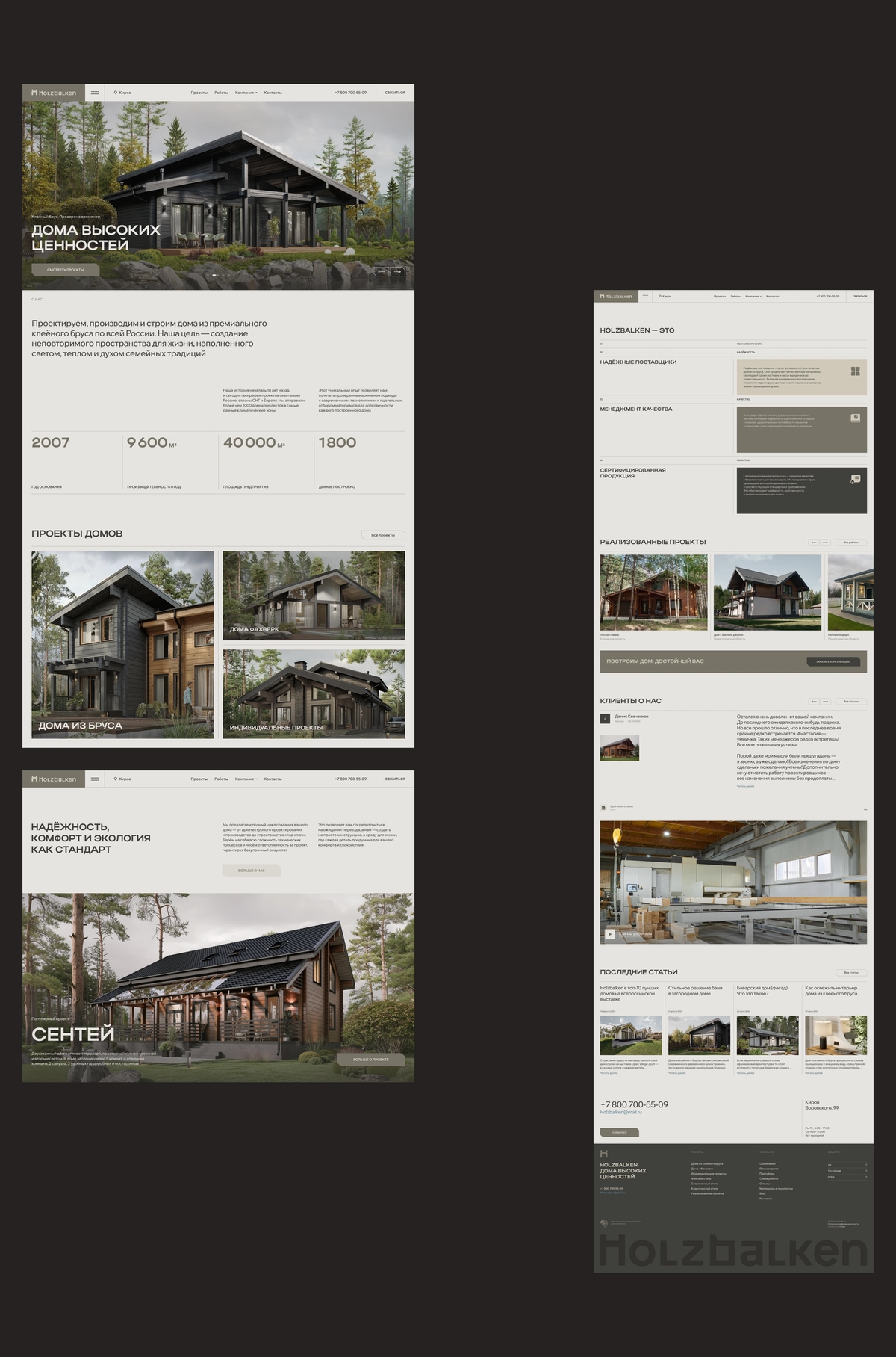 Сайт Хольцбалкен получился понятным, но в то же время стильным и уверенным — каждая деталь работает на логику, а «красивость» подкрепляет позиционирование и перекликается с философией их домов.