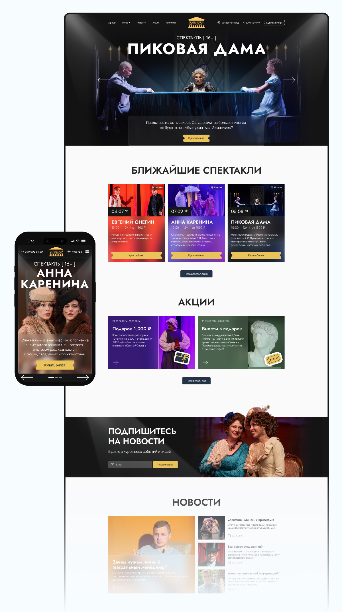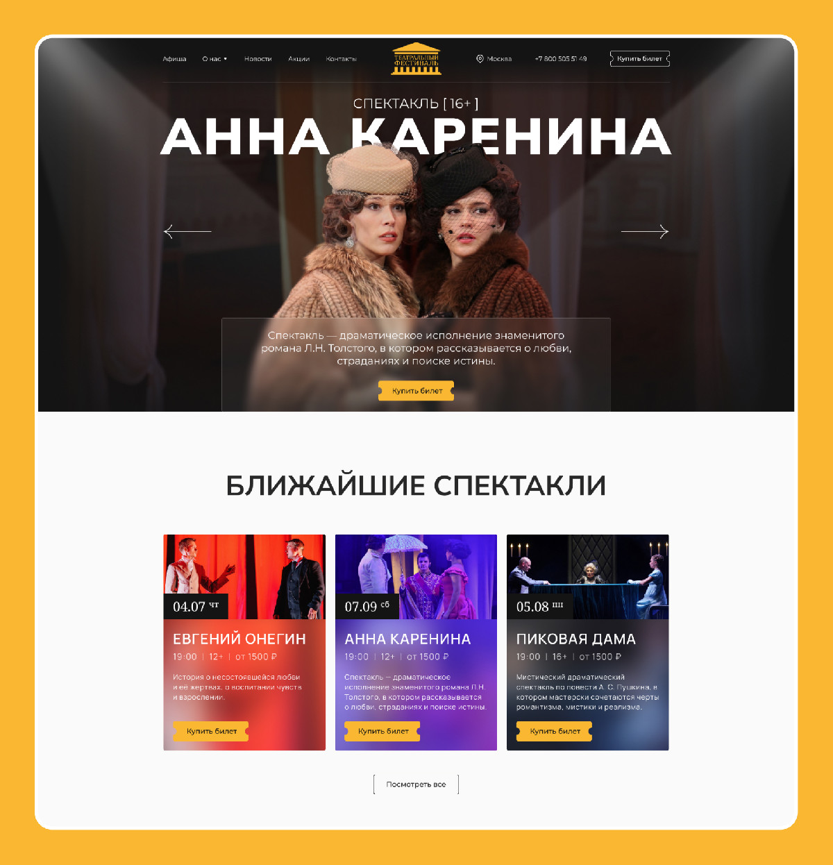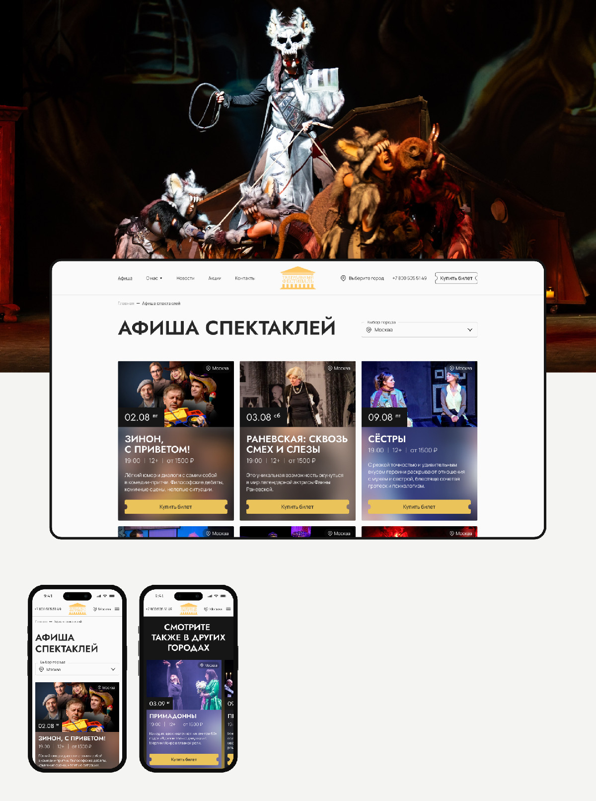 - через анимацию, шрифты и цветовую систему передали ощущение живого театра прямо в интерфейсе.