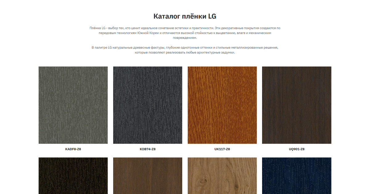Дизайн получился строгим, динамичным и визуально «дорогим». В центре – каталог плёнки, крупные заголовки, акценты на технологиях и мощности.