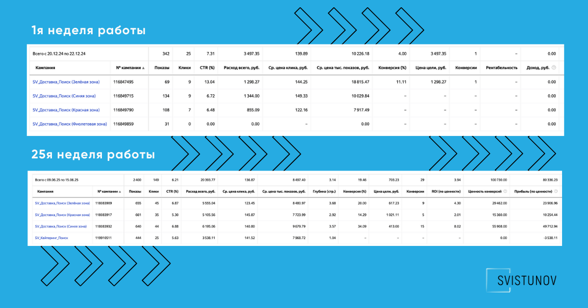 Ключевую роль сыграли зонирование и регулярная аналитика: отключили нерентабельные районы и перераспределили бюджет в пользу работающих сегментов.