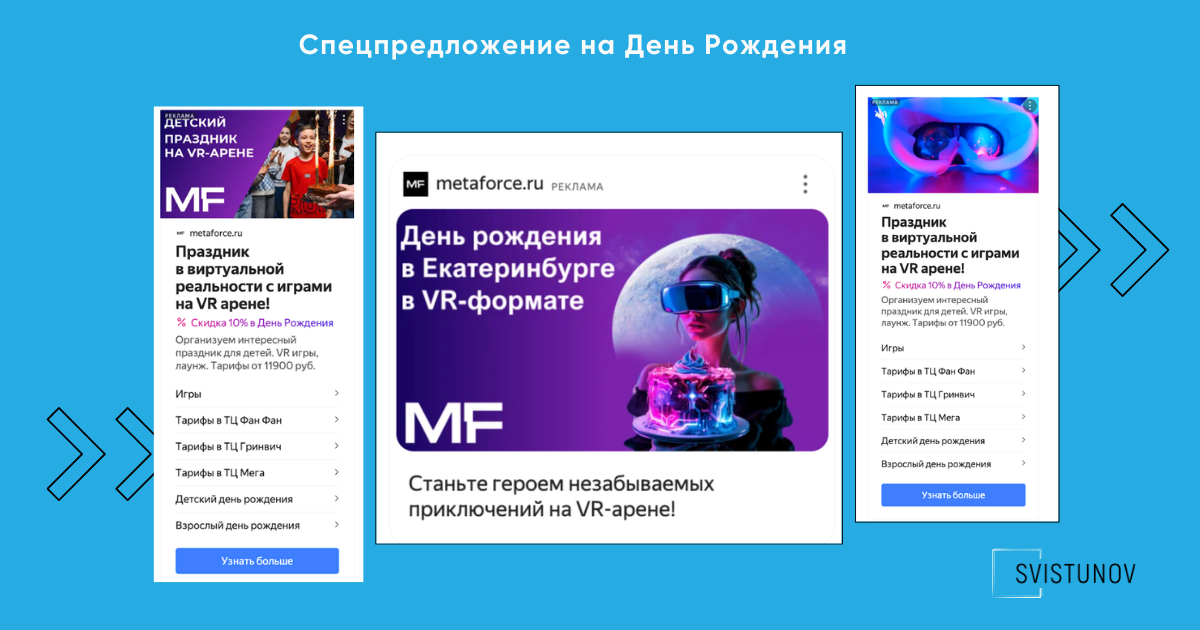 Перезапустили платный трафик для сети VR-парков Metaforce: собрали гипотезы заново, прогрели аудиторию во ВКонтакте, протестировали офферы и точки входа. В итоге нашли две рабочие связки: лид-форма ВК и квиз в Яндексе.
