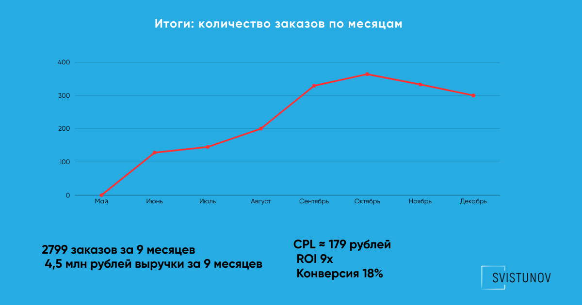 Этот кейс хорошо показывает наш подход: системные тесты, регулярная оптимизация и готовность менять входную точку, если сайт не конвертит — именно это и дает результат в сложных нишах.