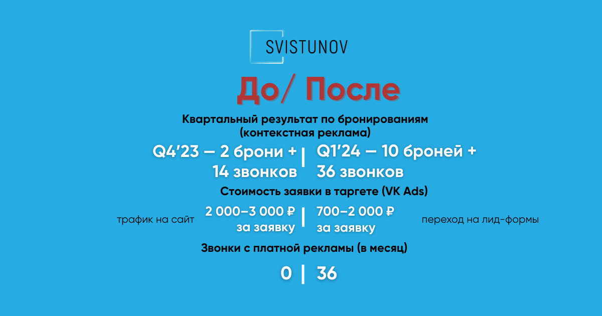 Осенью перешли на лид-формы: цена заявки стала 700–2000, поток — стабильнее.