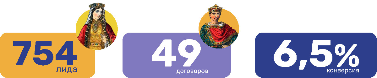 • добиться конверсии лиды/договоры в 6,5%