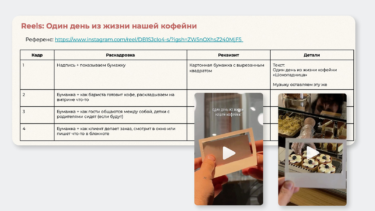 ТЗ на съёмку с раскадровкой и референсами