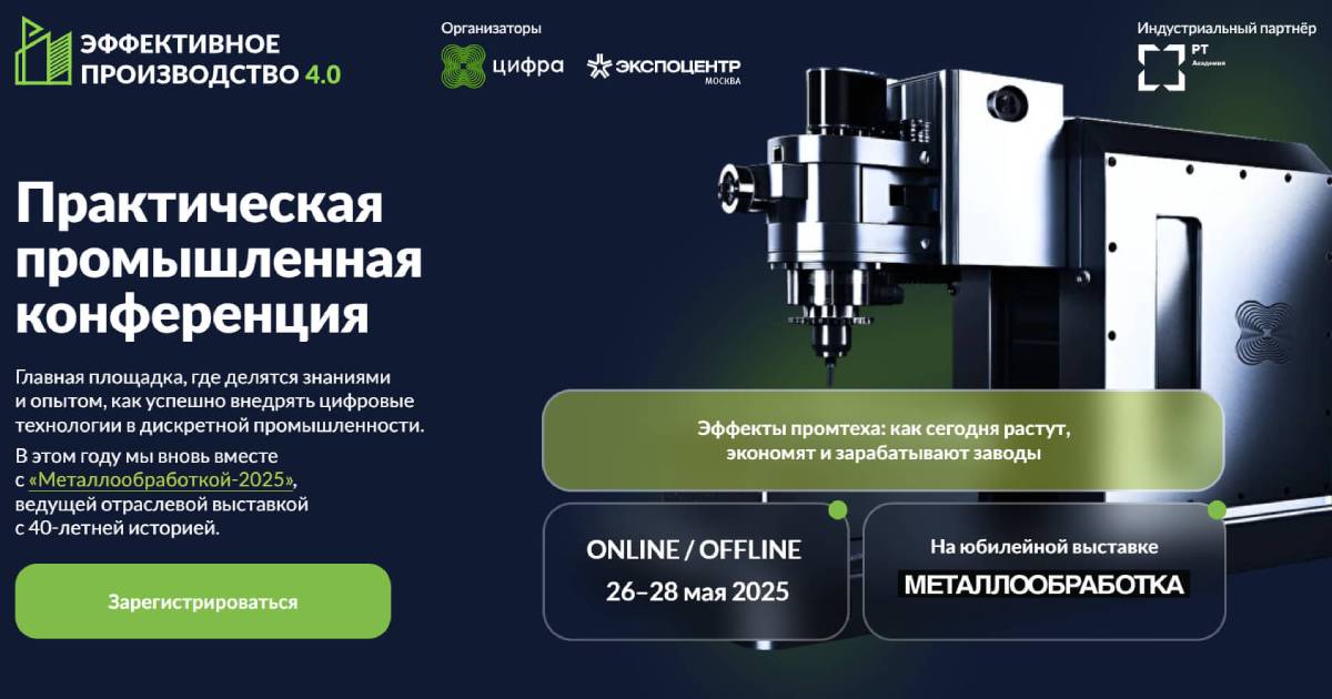 Среди спикеров — эксперты ведущих машиностроительных и станкостроительных заводов, а в программе — темы цифрового производства, повышения эффективности предприятий и применения искусственного интеллекта в промышленности.