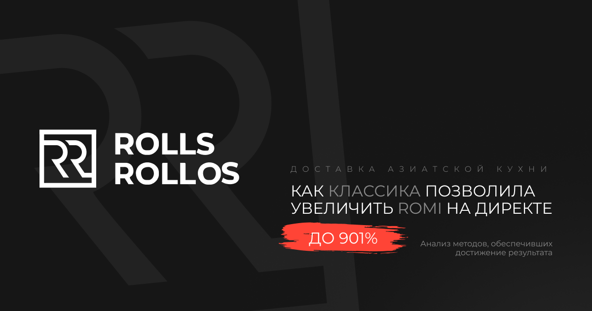 Кейс продвижения саратовской доставки роллов Rolls Rollos в Яндекс Директе. За счёт сегментации кампаний по дням недели, ручной настройки ставок и качественных креативов с реальными фото удалось увеличить ROMI с 346% до 901%, конверсию — с 6,7% до 12%, а CPA снизить вдвое.