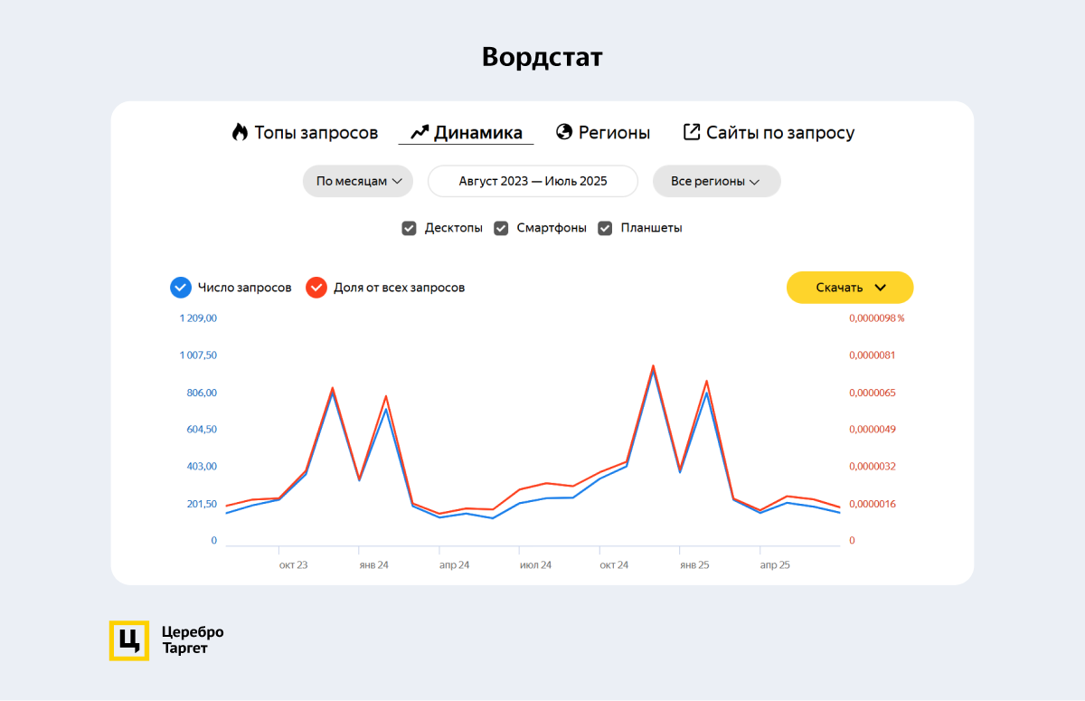 По статистике в Вордстат видно, что пиковые значения приходятся на декабрь и февраль в связи