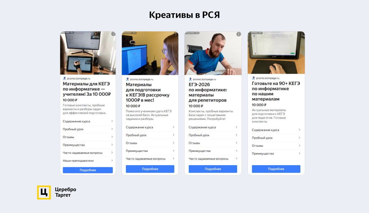 Клиент вернулся за продвижением в середине августа, так как сентябрь — самый прибыльный месяц. В этот раз мы рекламировали не только методические материалы для преподавателей, но и подготовительные курсы — для учеников.