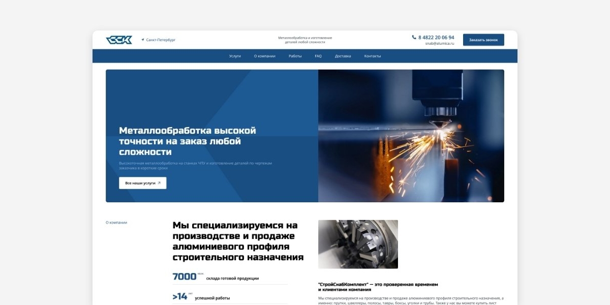 «ССК» — это современный производственный комплекс, специализирующийся на высокоточной металлообработке по строгим отраслевым стандартам. Нашей задачей было разработать сайт, который отразит весь спектр услуг и технологий, которые предоставляет компания, а также подчеркнуть профессионализм, точность и современность.